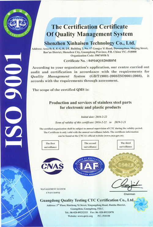深圳市鑫海森科技有限公司成立于2006年,坐落于中國廣東省深圳市沙井鎮(zhèn),地理位置優(yōu)越,對于我司原物料采購及協(xié)作加工有無法比擬的迅速性和高品質(zhì)性。 我司主要進行精密五金件的加工,產(chǎn)品涉及的范圍相當廣泛,涵蓋了通訊、聲學、光學、醫(yī)療、安防、機械、航空、陸運工具、家電等等領域。本公司目前產(chǎn)能1000^2全自動生產(chǎn)線6條。加工厚度從0.02mm-1.5mm產(chǎn)品的精度可以做到... 【查看詳情】
